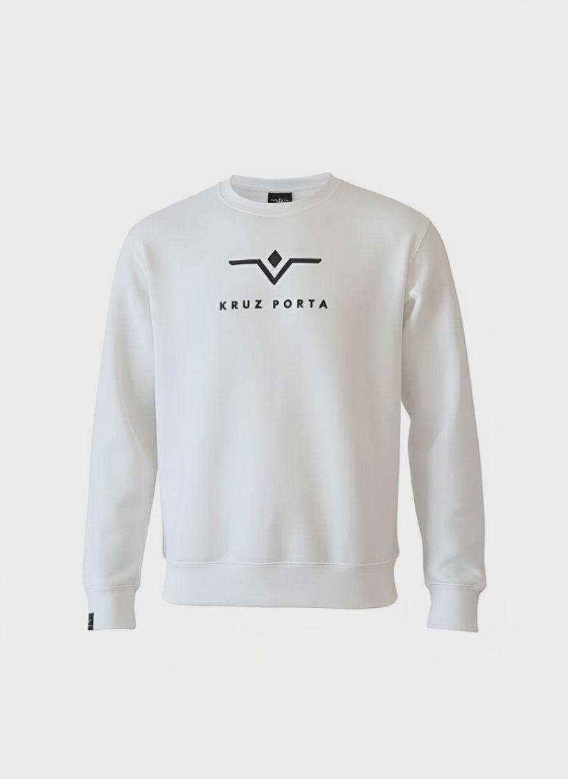 This Artic white sweater features a bold black 3d print of the Kruz Porta logo. Made with high-quality materials, this sweater is chic and stylish while also being comfortable and durable. Upgrade your wardrobe and make a statement with this eye-catching sweater.